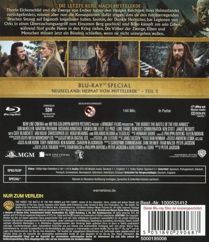 DER HOBBIT 3 - DIE SCHLACHT DER FÜNF HEERE BLURAY || NUR ZUM VERLEIH